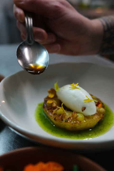 "Notre cuisine est une cuisine de saison et de proximité. Nous travaillons des produits d'exception comme les huîtres naturelles du Bassin et de Galice. Nous sommes réglés sur les saisons, notre carte se renouvelle donc régulièrement."