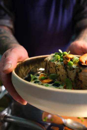 "Notre cuisine est une cuisine de saison et de proximité. Nous travaillons des produits d'exception comme les huîtres naturelles du Bassin et de Galice. Nous sommes réglés sur les saisons, notre carte se renouvelle donc régulièrement."